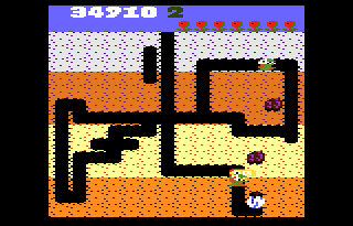 Sound: The sound is actually very good. The opening tune when you start a game is present and sounds accurate to the arcade. Even the little tune, which plays as you dig around making the tunnels, is there. Atari included every sound from the arcade in this version. There are sounds for everything in the game. The rocks falling, the Fygars shooting off fire, even the little tones alerting you to a fruit or vegetable prize are present.