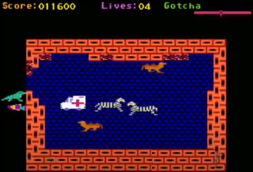 Sound: The sound isn't great. Funkmaster V told me how the chaotic and out of place sound effects were kind of a favorite memory of his from the arcade game. Video 61 tries to replicate that vibe, but it just sounds like typical Atari 2600 and 7800 stuff we've heard before. The "machine-gun" running sound is sorely missed. You also get a little ditty that plays on the menu and at intermissions... along with jumping and collision sound effects. My favorite is the sound of the siren as the ambulance comes to pick you up after you've been mauled by an animal. But even that isn't great, but the whole idea is fun and worth a chuckle the first time or two you see it.