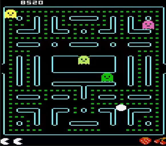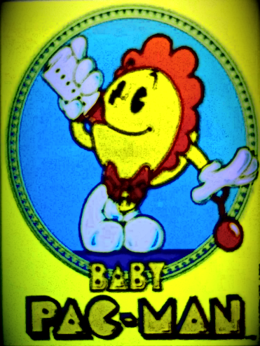 Verdict: Baby Pac Man looks more like Business Man Pac Man, and his adversaries look more like work associates than cartoon bad guys from a haunted daycare. Ms Pac-Man is the source code material for this game, so there are movies after clearing a couple of mazes. It is devoid of the story of this love child coming to be. Of course it is. No love, no romance, no stork, no arguments between lovers about getting rid of it. This game should have been called Pac Man's Immediate Supervisor instead, and the movies should have featured a Pac-Man person with a pencil mustache, smoking a pipe and doing the company's taxes. It may be an ugly version of Pac Man, but it has interesting maze lay outs, challenging power pellet locales and the ghosts are tough. Take it or leave it: