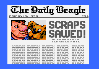 There's actually three endings to this game, all revolving around a slow news day at the paper. The headlines read "Scraps Saved!" "Scraps Lost!" and "Scraps Sawed". Scraps Sawed......... Yes... a children's video game can end with a puppy being sawed in half if you don't solve Mr. Big's self indulgent, dumb, sliding puzzle at the end of the game in time. Weird tip man, weird tip. As morbid as this can be, the newspaper endings are a nice deviation from the norm.