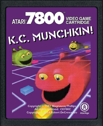 Graphics: This homebrew by the 7800 hobby programming legend Bob Decrescenzo (Pac Man Plus) is butt ugly. But that's OK- it's not Bob's fault. This port looks a bit better than the original Magnavox version. KC and the ghost/ monsters feature two colors instead of one, and that looks twice as good, right? Well, except for KC's added teeth. Those chompers are ghastly. The fonts on the menu and mazes look the same as the Odyssey version, although this game's power pellets have a tad more flair here.