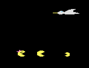 Graphics: Ms. Pac Man looks really good! (Don't tell Pac Man I said that...) And that's nice to see after that dreadful orange thing that was called Pac Man for the 2600. Luckily, they had some real talent working on Ms Pac Man's development and it shows. I'm sure somebody could point out every way that this version is visually inferior to the arcade game, but it looks just fine to me. The dots and power pellets are round, the ghosts don't flicker like mad, the mazes are familiar to the arcade game and most of all, Ms Pac Man has all her girlish charms intact.