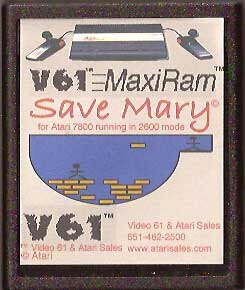 The nice fellas at Video 61 (aka www.Atarisales.com) host a website that has new in the box Atari games and accessories for pretty good deals. However, once you go to the site you will notice right away that the site itself is a relic from the geocities/ angelfire era and the box art on the Video 61 games are just plain bad. In other words, these aren't the most artistic fellows around. Maybe they should have thought about that terrible but true trope "sex sells" while designing this label. Theirs features two stick figures that do not appear in the game in a blue bowl that reminds me of a toilet. Also, Maxi-Ram sounds like the worst way to insert feminine hygiene products. If the government issued generic video games with your government cheese and peanut butter, it would probably look alot like this thing.