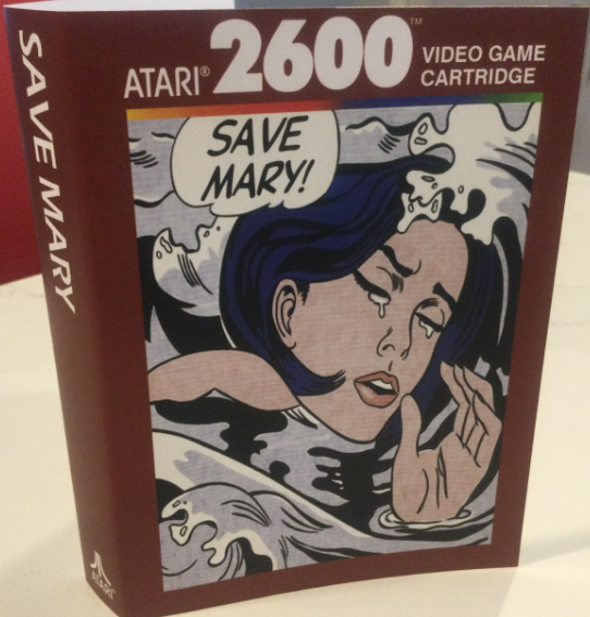 Like I just said- Atari is making some smart business moves, and that includes re-releasing games they just released for higher prices to collectors and fools. There is a Billy Butcher set of 4 titles that they just complied. If you didn't know, Billy Butcher is a pretty swell pop artist and makes some really cool pieces. In this set, he redesigned the covers for Outlaw, Fatal Run, Dark Chambers, and Save Mary. In this thingy, Mary looks exactly like an ex-girlfriend of mine who has terrific legs and quite frankly- I still miss them. This version of Mary is more empowered, and looks like she is blowing shit up around her and is about to fly off Wonder Woman style- who I never knew could fly until that terrible 1984 movie. The 8 bit Mary is on this girl's shirt... the worst part of the piece. Probably my favorite of the Save Mary images that I have found online, and of course... the priciest.